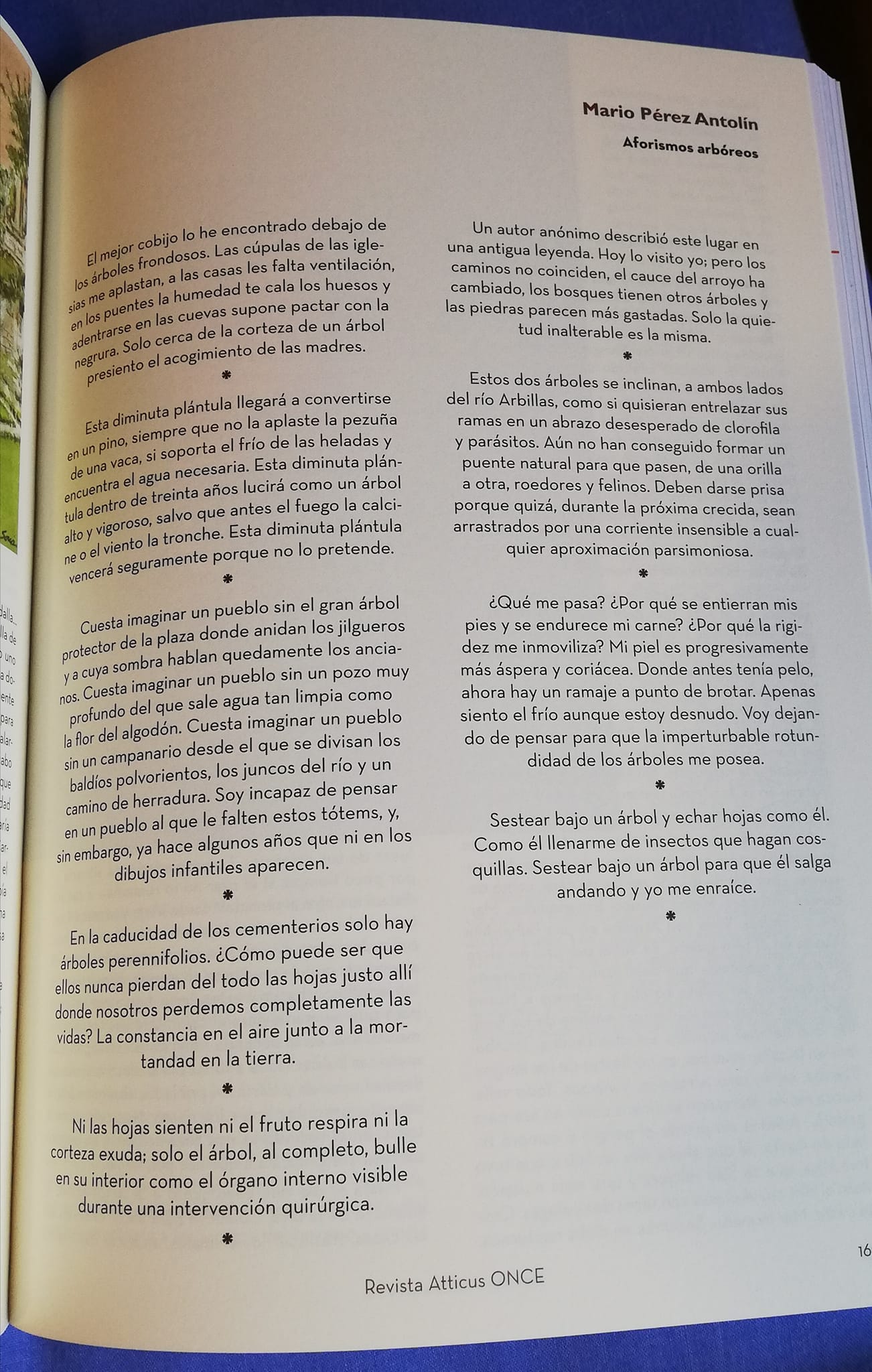Mis aforismos arbóreos publicados en el número 11 de la revista Atticus